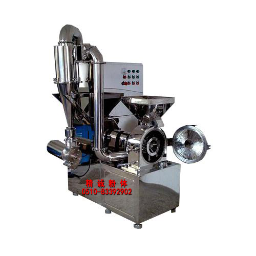 主要用途: 該機組適用于制藥、食品、化工等行業,具有風冷、無篩網等多種性能,它不受物料粘度、軟硬度及纖維等限制,對不同物料能起到較好的粉碎效果。適用于粉碎帶纖維的中藥材、帶一定油性的物料。 工作原理: 該機由加料斗,分級輪,粉碎刀片,齒圈,粉碎電機,出料口,風葉,集料箱,吸塵箱等部分組成,物料由加料斗進入粉碎室,通過高速旋轉的刀片進行粉碎,調節分級輪與分級盤的距離來達到所要求的物料細度,高速旋轉的風葉把達到要求的物料從粉碎室引到集料箱布袋中,沒有達到要求的物料繼續在粉碎室中粉碎,集料箱布袋產生的粉塵由吸塵箱收集,該機組結構簡單,操作清理方便,噪音小,產量高,機器采用不銹鋼材料制作,粉碎過程中無粉塵飛揚。 主要特點: ZFJ系列中草藥粉碎機新穎大方、不銹鋼制作、結構緊湊、生產效率高、降低生產成本且提高生產效力,基本無易損件,操作簡便。該機組設計原理合理,能粉碎不同纖維性較強的物料,適合五谷雜糧溫控合理,過濾回收率在99.8%以上。 |